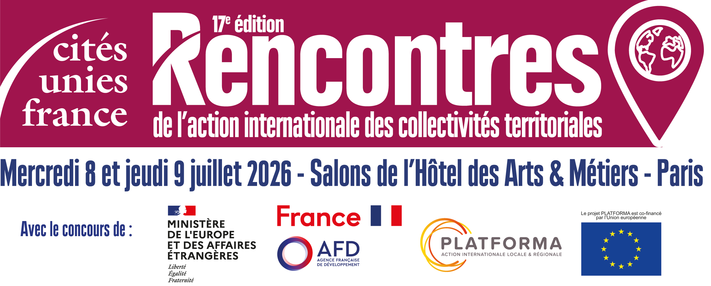 Les Rencontres de l’AICT sont organisées avec nos partenaires historiques : le Ministère de l’Europe et des Affaires étrangères, l’Agence française de développement et le projet PLATFORMA, co-financé par l’Union européenne.